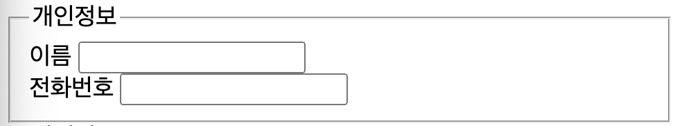 - fieldset은 여러 개의 입력 요소를 묶어주는 역할