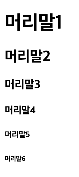 - 제목 태그 라고 하며 숫자가 커질수록 크기가 작아짐.