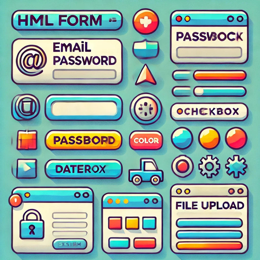 1폼 요소 (form)사용자의 데이터를 입력받는 HTML 요소2체크박스 입력 (type=“checkbox”)여러 개의 선택지를 동시에 선택3라디오 버튼 입력 (type=“radio”)한 그룹 내에서 하나의 선택지만 선택4색상 선택 (type=“color”)색상 팔레트에서 색을 선택5날짜 및 시간 입력날짜와 시간을 선택할 수 있는 입력5.1날짜 입력 (type=“date”)날짜를 선택할 수 있음5.2날짜와 시간 입력 (type=“datetime-local”)날짜와 시간을 함께 선택할 수 있음5.3월 선택 (type=“month”)연도와 월만 선택할 수 있음5.4주 선택 (type=“week”)해당 연도의 몇 번째 주 선택5.5시간 입력 (type=“time”)시간만 입력할 수 있음6숫자 입력 (type=“..