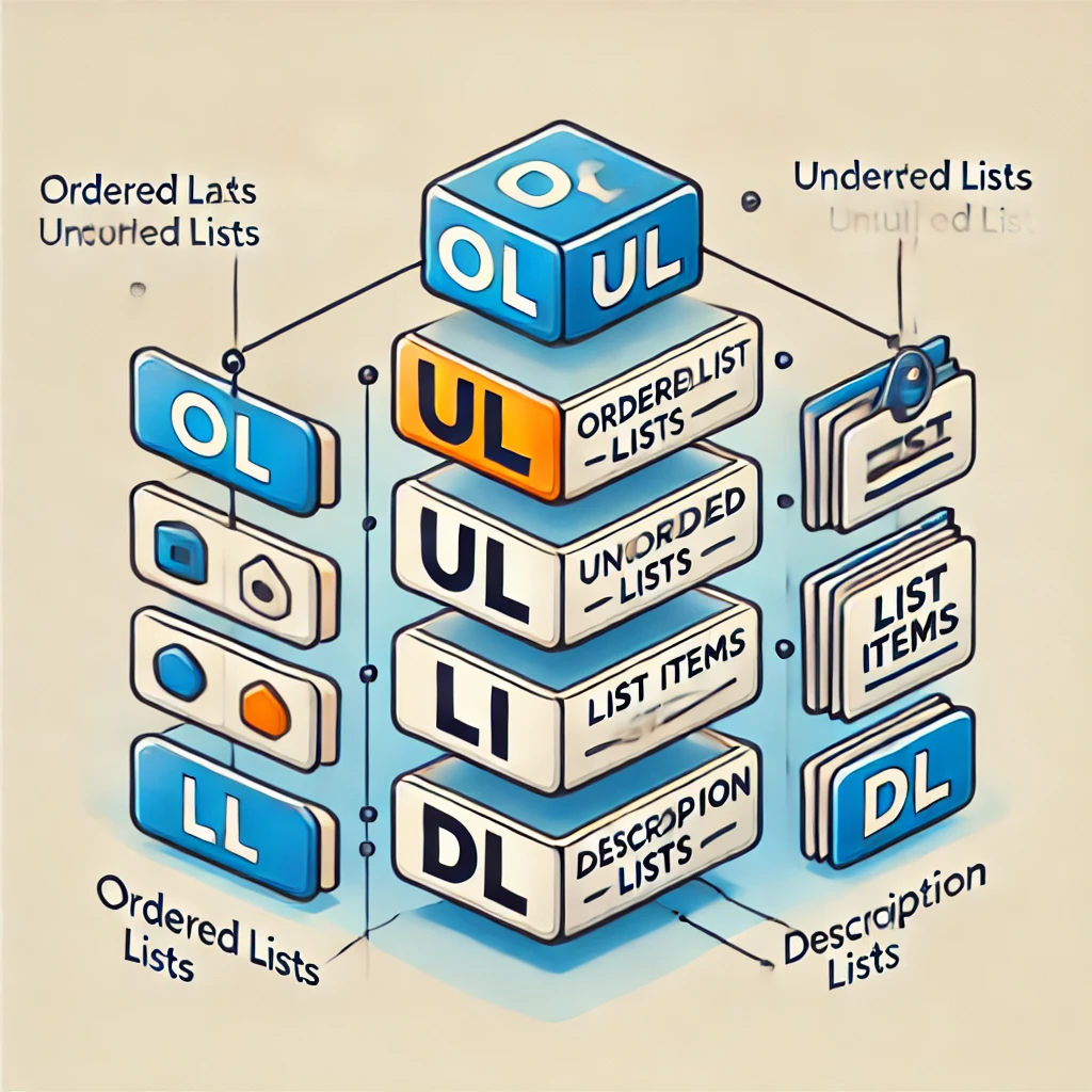 순서 없는 목록 (ul)• 순서가 중요하지 않은 항목들을 나열할 때 사용• 태그 안에 태그로 항목을 나열• 예시: 목록 순서가 중요하지 않은 경우 (예: 쇼핑 목록)순서 없는 목록 순서 없는 목록1 순서 없는 목록2 순서 없는 목록3 순서 있는 목록 (ol)• 항목에 순서가 중요한 경우 사용• 태그로 목록을 만들고, 항목은 태그로 표시• 예시: 준비물 목록, 작업 순서 등순서 있는 목록 순서 있는 목록1 순서 있는 목록2 순서 있는 목록3  설명 목록 (dl)• 특정 용어나 정의를 설명할 때 사용• 태그로 시작하고, 는 설명할 용어, 는 그 용어에 대한 설명을 작성• 예시: 용어집,..